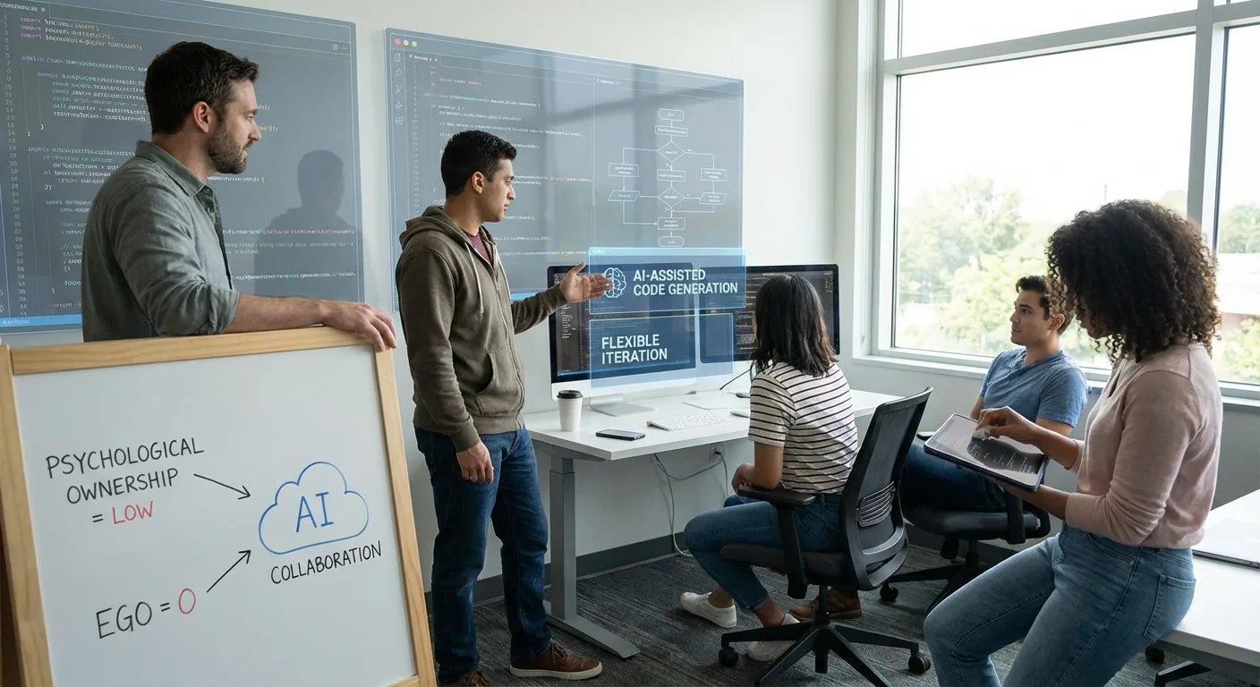 AI-native teams stay flexible. When AI writes most of the code, there's less ego attached to it. Bad code gets rewritten without drama. New approaches get tested without political resistance. This aligns with what organizational psychologists call "psychological ownership." When people invest significant personal effort into creating something, they resist changing it even when evidence suggests they should.